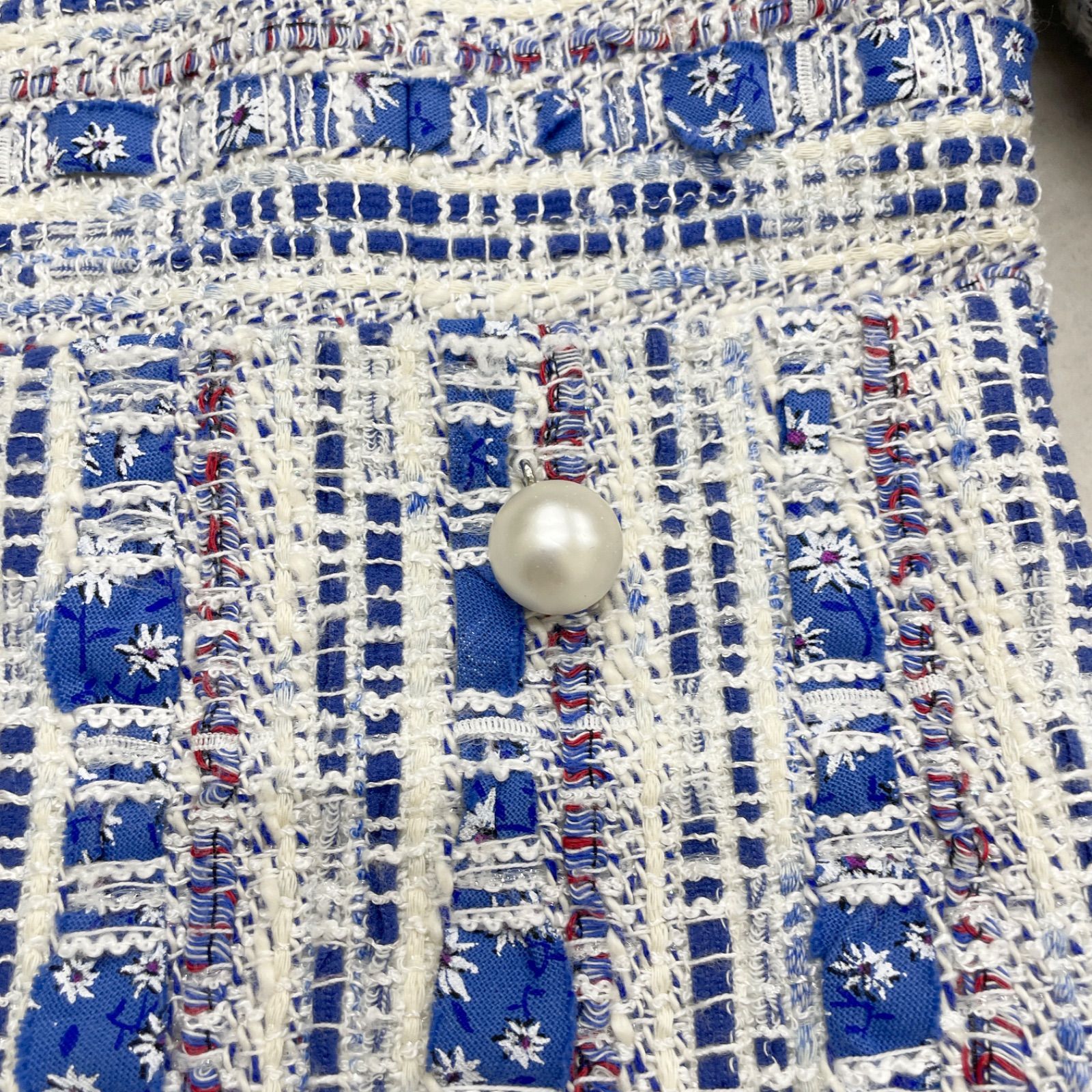 ANAYI アナイ ノー ジャケット ミックスツイード パール コットン ブルー レディース 38