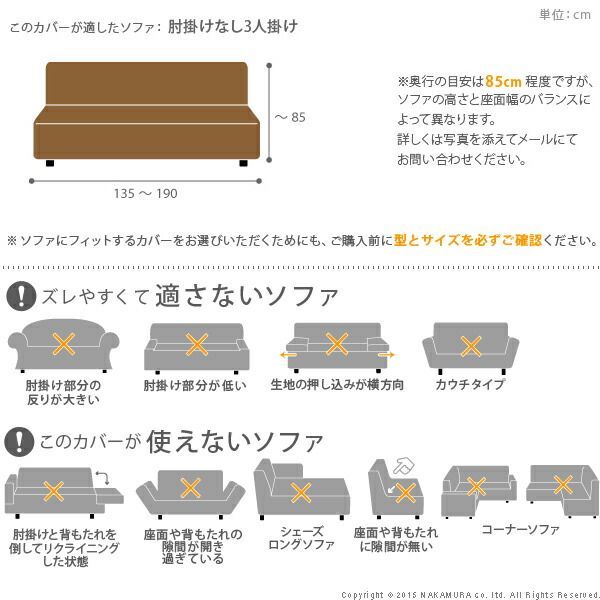 ソファーカバー ストレッチ 肘なし イタリア製ストレッチフィットソファカバー 〔シチリア〕 アームなし 3人掛け用 伸縮 カバーリング 洗える アームレス