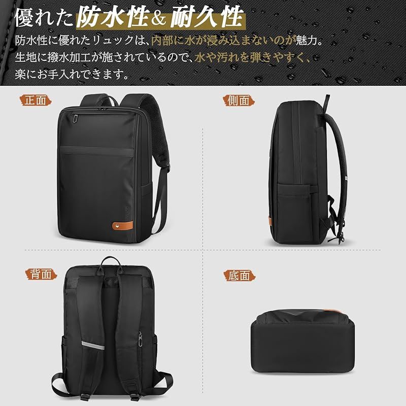ecoofee リュック ビジネスリュック メンズ 防水 軽量 大容量 バックパック リュックサック 15.6インチ PCリュック サイドポケット付き タウンリュック おしゃれ 盗難防止 通勤 通学 出張 旅行 ブラック 防災 0