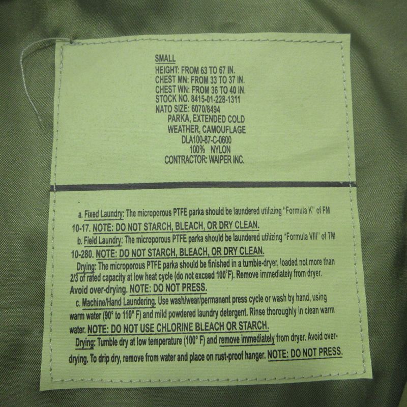 衣料 ミリタリーイリョウ カモ柄ミリタリージャケット WAIPER PARKA COLD 21 WP 67-CAMO カーキグリーン系 サイズ S 93