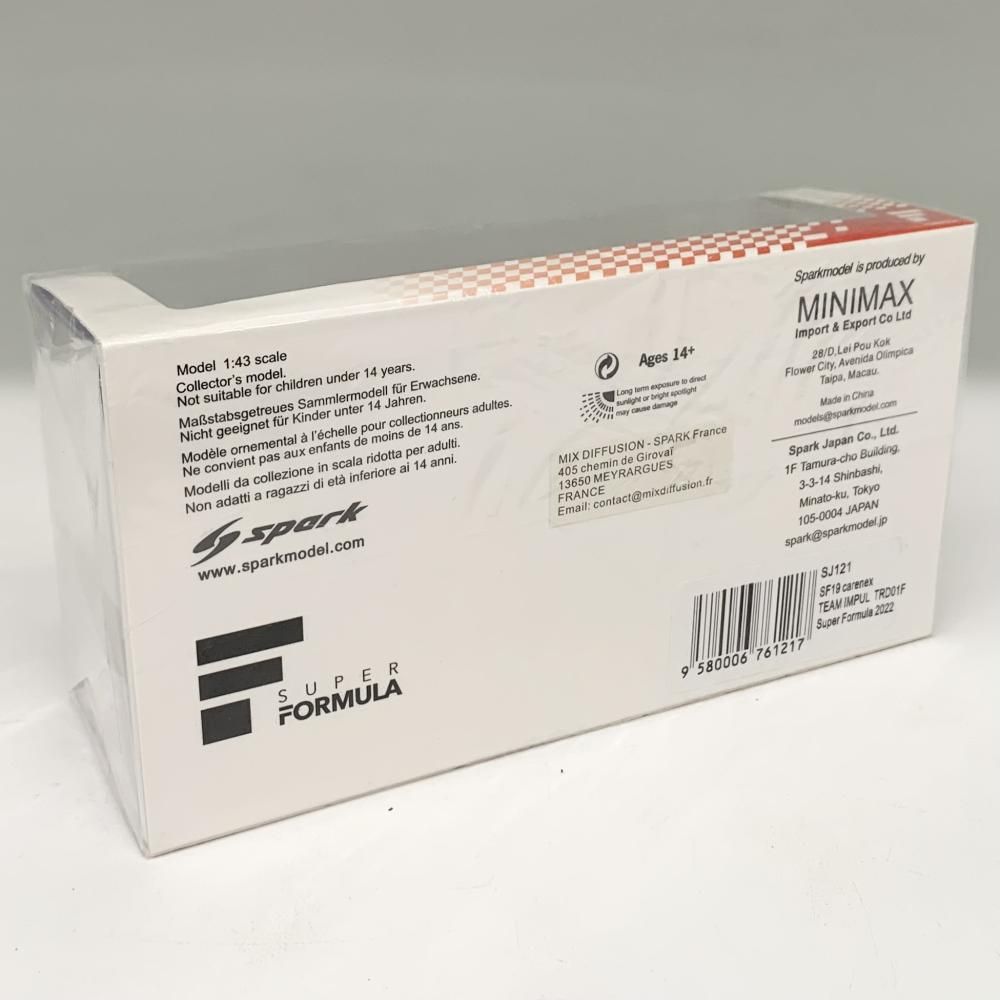 【新品】一部開封 スパークモデル 1/43 SF19 No.20 カーエネクス チームインパル TRD 01F Super Formula 2022 Ryo Hirakawa[240017581182][17]