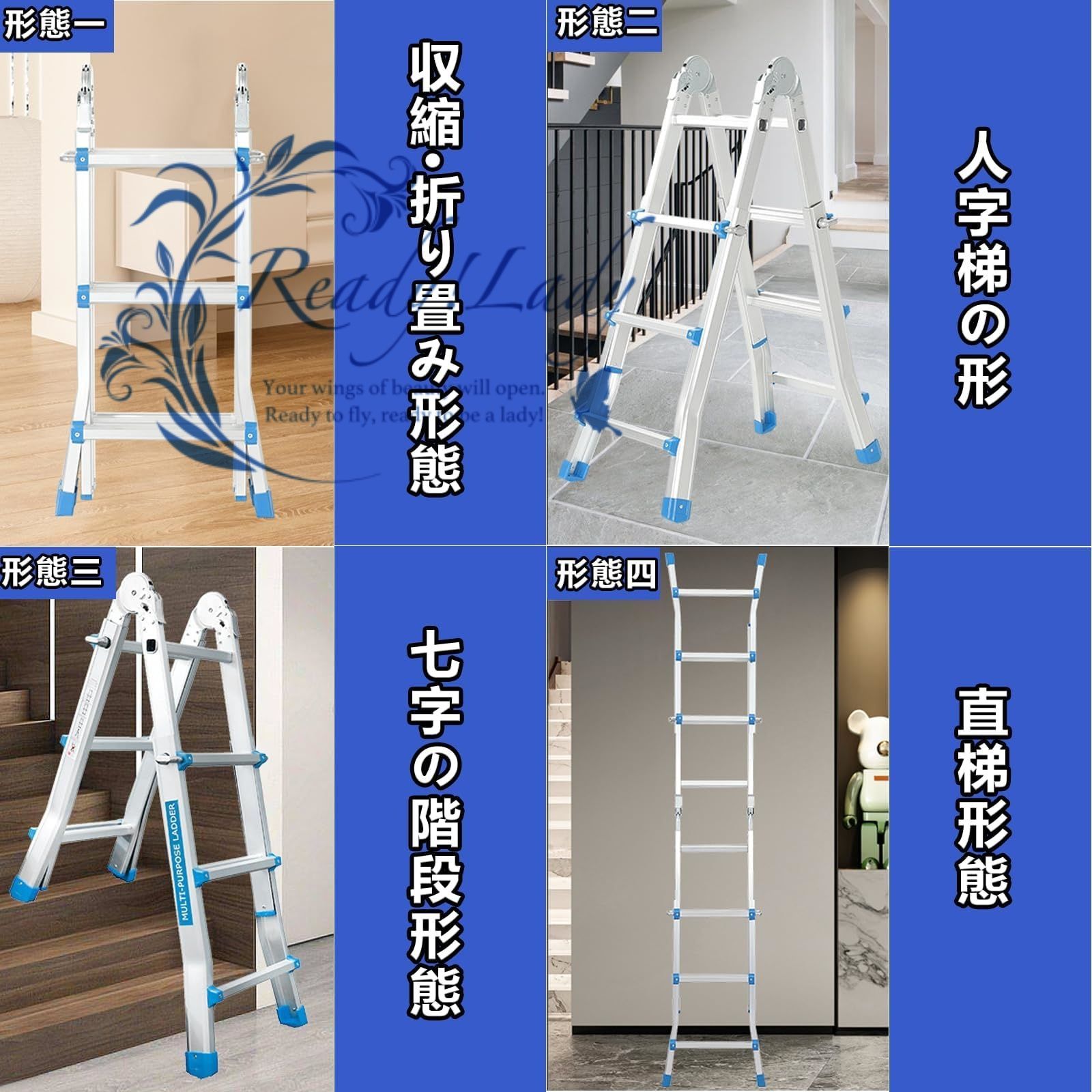【多機能設計】- このはしごは、さまざまなニーズに応えるために注意深く設計された多機能ツールです。調節可能な機能を備えており、Aフレームはしご、伸縮はしご、90度階段など、さまざまな形態に変換することができます。家庭や建物のメンテナンス、窓の清掃、屋内外の装飾、ペイント作業など、さまざまなタスクに使用することができ、作業をより効率的かつ便利にします。