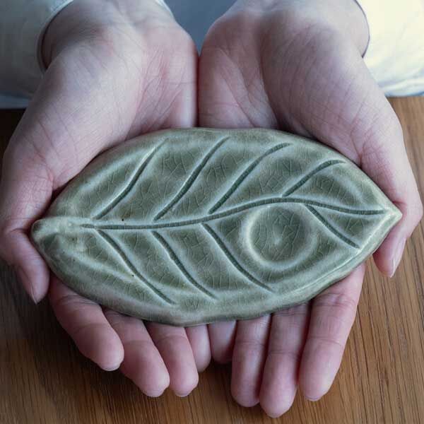 釉薬に生じる細かいヒビがまるで葉っぱの葉脈のようにも見えますね。
