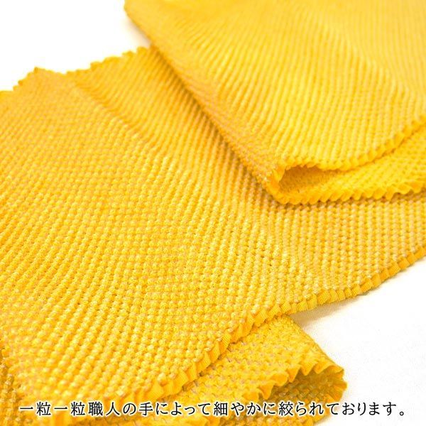 振袖用 正絹 総しぼり 帯揚げ イエロー オレンジ系 黄色 oa-054 絹100% シルク 黄 総絞り しぼり 絞り 振袖 成人式 京都うさぎ堂