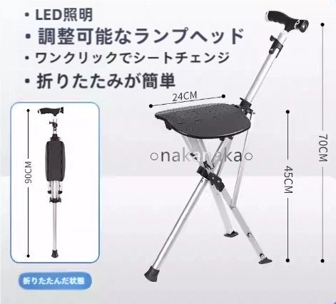 一キー速開自働折り畳みステッキ椅子アルミ合金高齢者滑り止め付きライト三角ステッキスツール