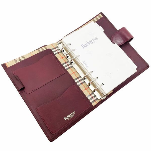 バーバリー ロンドン 手帳カバー レザー 革 ボルドー系 OF LONDON Burberrys バーバリーズ アジェンダ システム手帳カバー ダイアリー アドレス帳 メモ帳 ノート 文具 6穴式 ブランド小物
