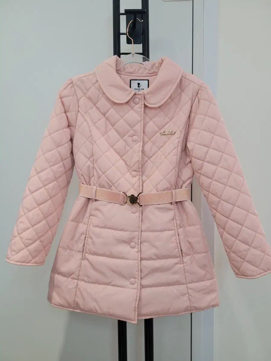 フレンチキャット ピンク キルティング ベルト付き ジャケット 145サイズです。キルティングデザインにベルトディテールまで加わり、高級感のある愛らしい桃色ピンクカラーでとてもきれいです。使用感のない新品級です(未使用に見えます)。コメントがなければすぐに安全決済してください!