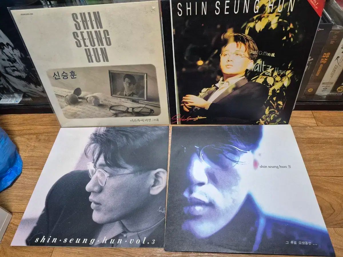 シン・スンフン 1集から4集までのLPレコードのコレクションです。写真でご覧いただけるように、アルバムカバーの状態は良好です。