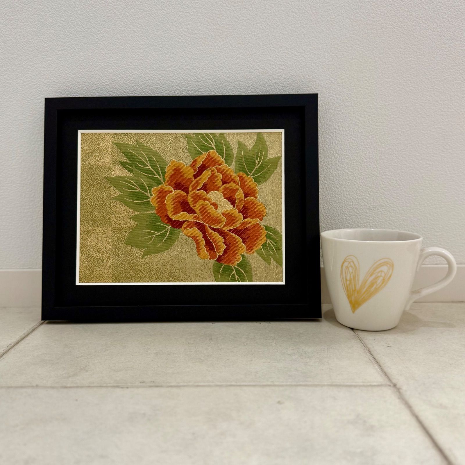 京都帯屋さん フレーム入りシルク織物アート KENZO 市松牡丹