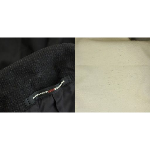 【状態】ジャケット襟部分に白い薄汚れがあり、パンツのポケット袋布部分に毛玉が複数ございますが、使用感が少なく、状態の良い商品です。(写真9枚目参照) ※あくまでも新品ですので掲載写真や記載内容をご確認いただき、ご理解の上ご購入ください。 ※手作業によるケアのため、取り切ることができない繊維の付着物がございます。予めご了承ください。
