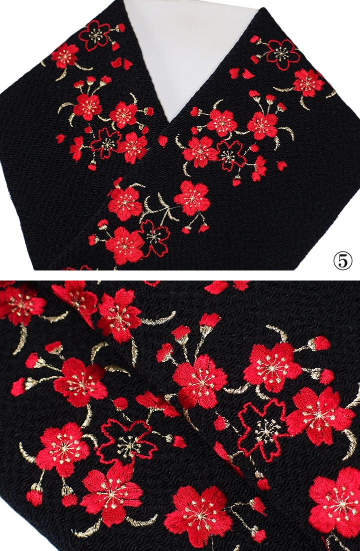 半襟 刺繍 半衿 振袖 成人式 桜 花 水色 青 紫 黒 正絹 鬼しぼ ちりめん レディース 卒業式 袴姿 フォーマル モダン 個性的 T 11 r 988