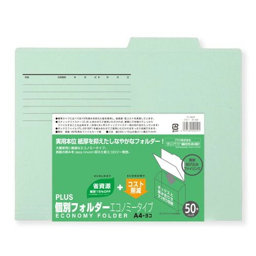プラス 個別フォルダー エコノミー 薄型カード紙タイプ A 4横 ブルー FL 082 IF
