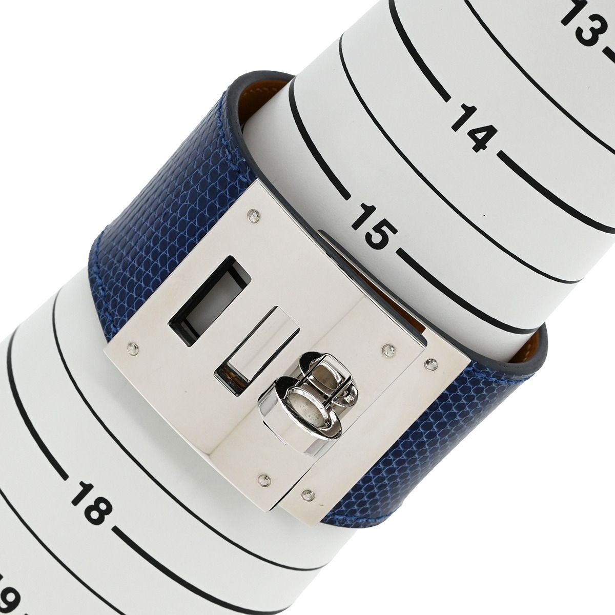エルメス HERMES バングル ケリードッグ リザード メタル ブルー×シルバー シルバー金具 ブレスレット 大型メタルバックル X刻印