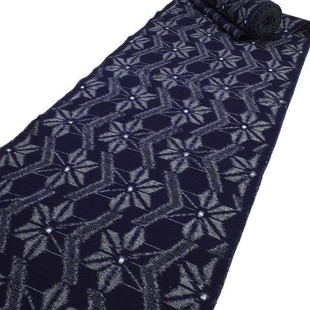 本場久留米絣 着物 着尺 反物 木綿 綿紬 手織り 藍染 濃藍地 ネイビー 先染め 絣 麻の葉 花 久留米 カジュアル 普段着 お出かけ 販売 コットン リサイクル みやがわ sb 13666