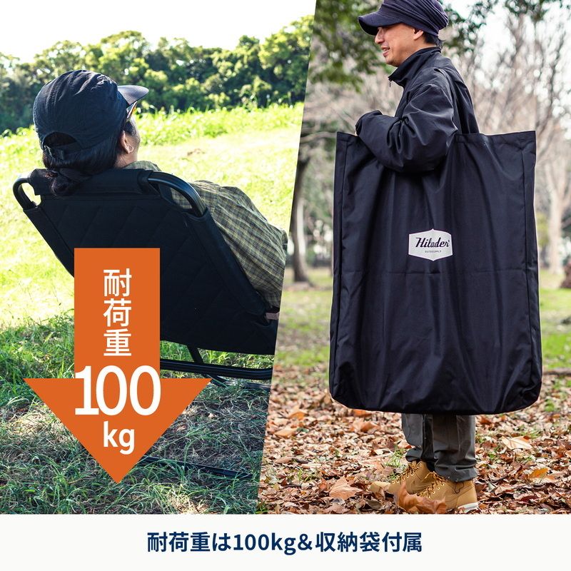 ●素材:コットン(本体生地)、アルミ(フレーム)、ブナ(肘かけ)、600Dポリエステル(収納袋)
