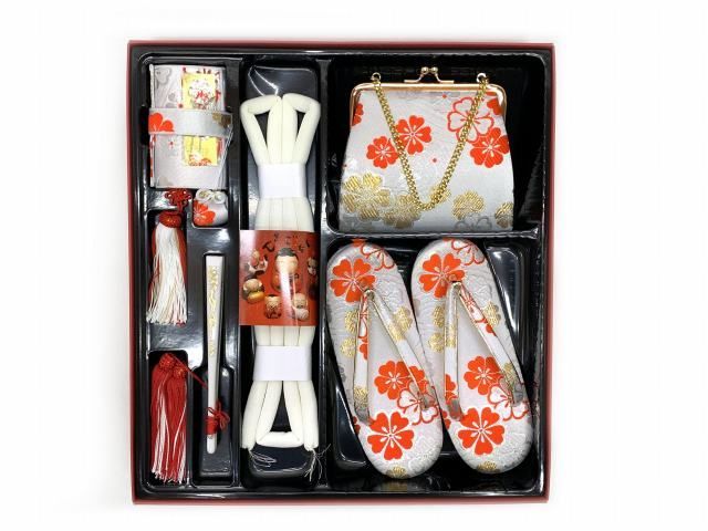 七五三 7歳 女の子 大寸 金襴 結び帯 はこせこセット ペアセット 合繊 白系 桜 UTPS-P 24