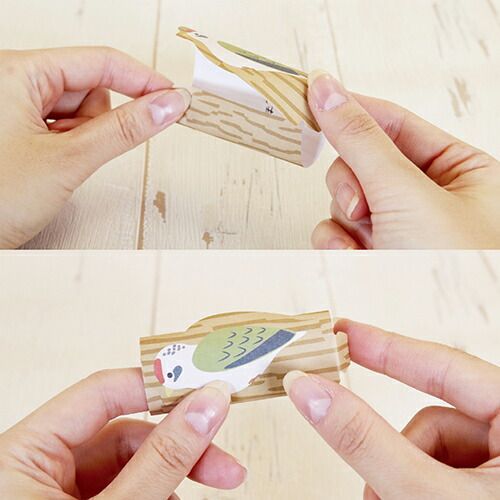丸めることによってキュートなアニマルがあらわれる付せんです。付せんの内側にメッセージを書いたら、くるんと丸めて糊部分を貼り付け、ツメ部分を折り込みます【検索ハッシュタグ】#アオトプラス#ふせん#付せん#付箋#ROLLPETTA#動物#キツツキとり#鳥#動物#アニマル