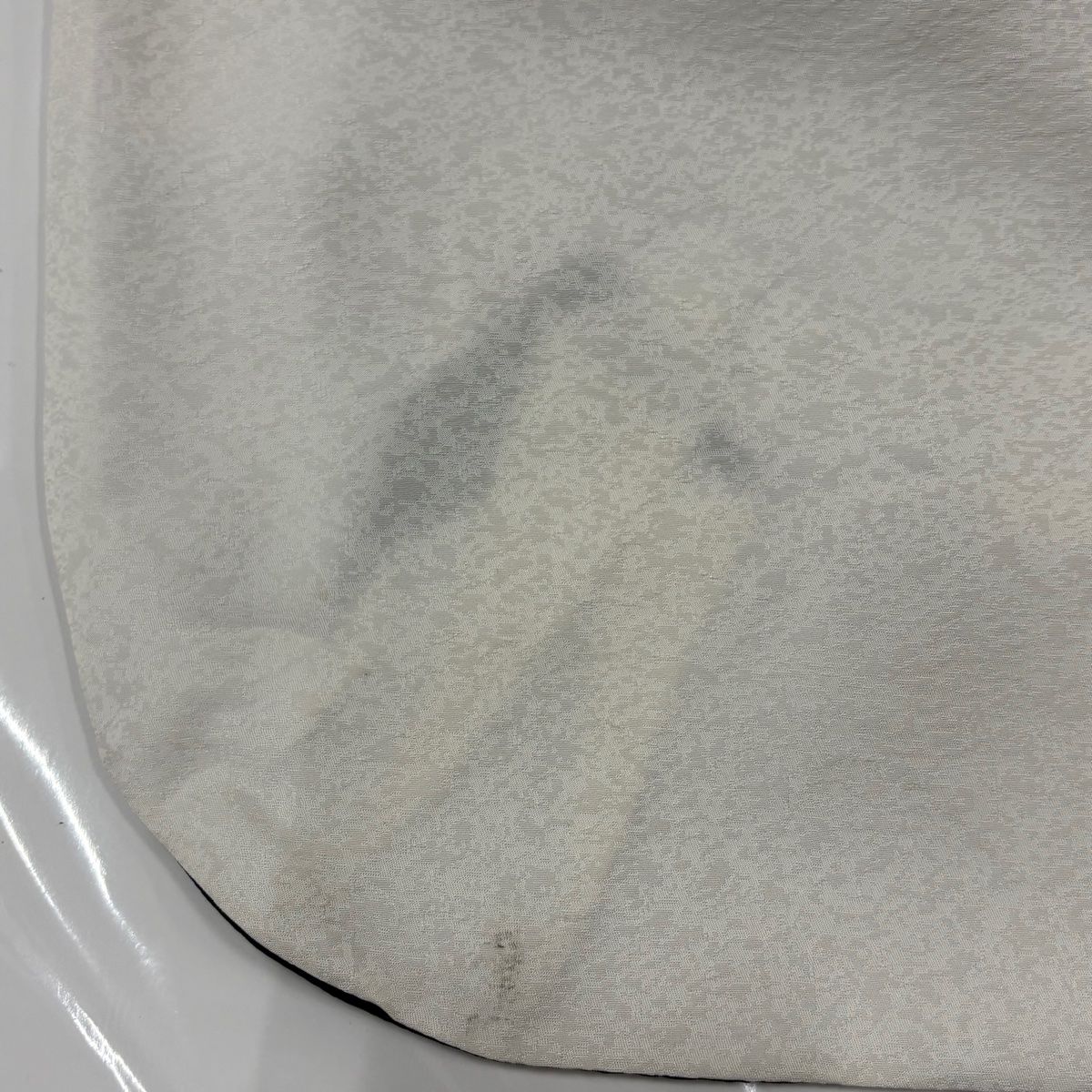 胴裏に小さなシミ、八掛に点シミ、裏地所々にシワがございます。