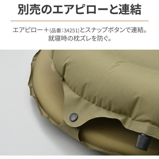 別売りのエアピロー+(品番:34251)とスナップボタンで連結できるため、寝ているときに枕がズレる心配がありません。