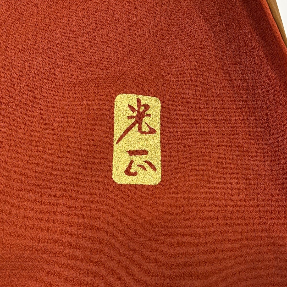 付下げ 身丈159.5 cm 裄丈67 M 袷 和田光正 落款 鏡裏文 花鳥 金銀彩 赤茶 正絹 名品