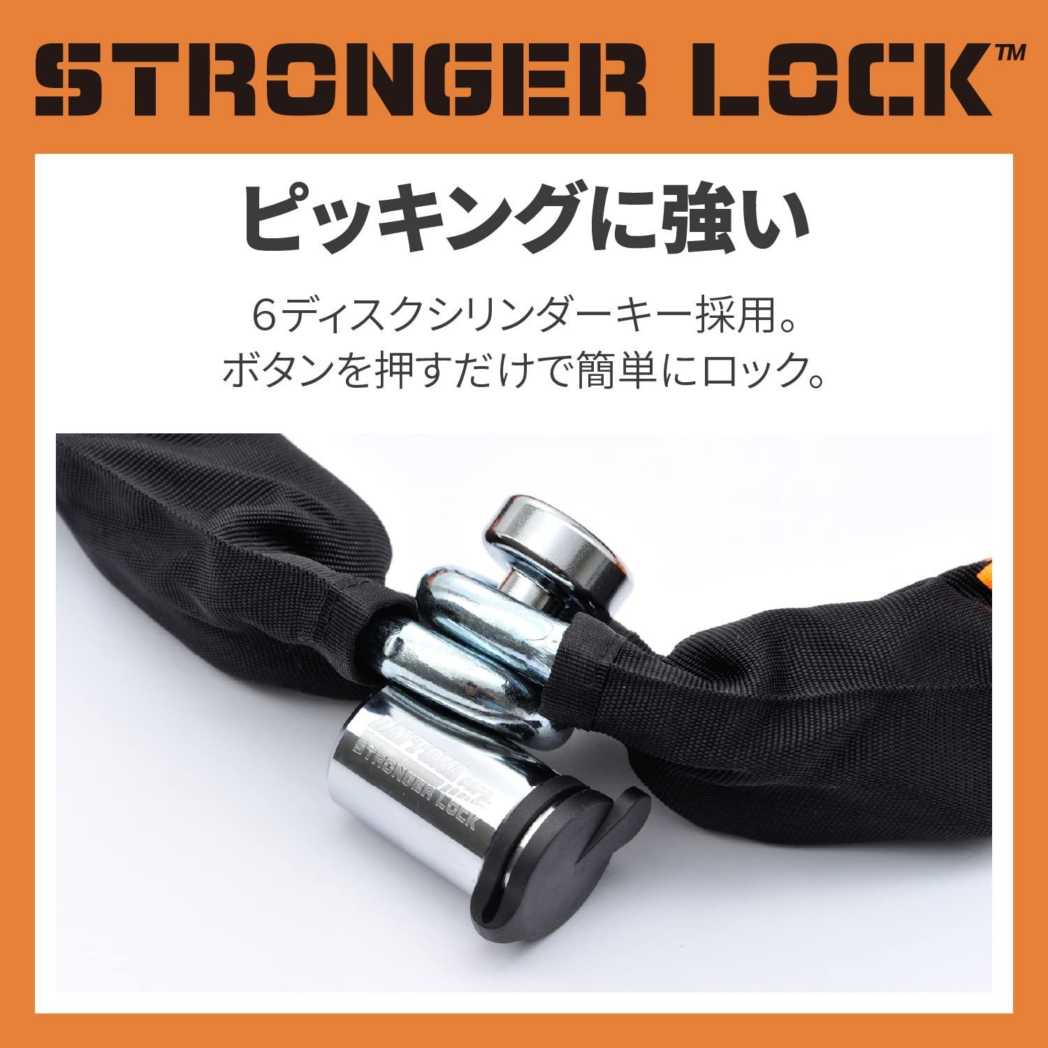 42mm幅のφ12mm極太チェーンで愛車を守る。