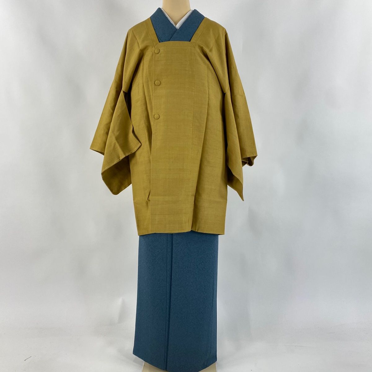 道行 身丈89 cm 裄丈66.5 M 和装コート 角衿 紬地 黄土色 正絹 秀品