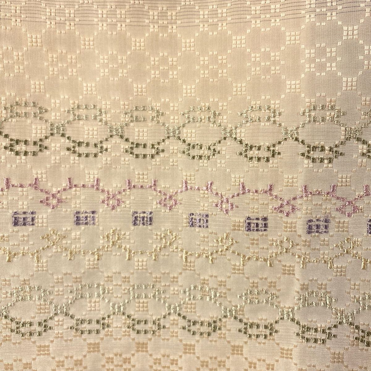 付下げ 身丈165 cm 裄丈68 L 袷 紬地 縞 幾何学模様 花織 刺繍 薄茶色 正絹