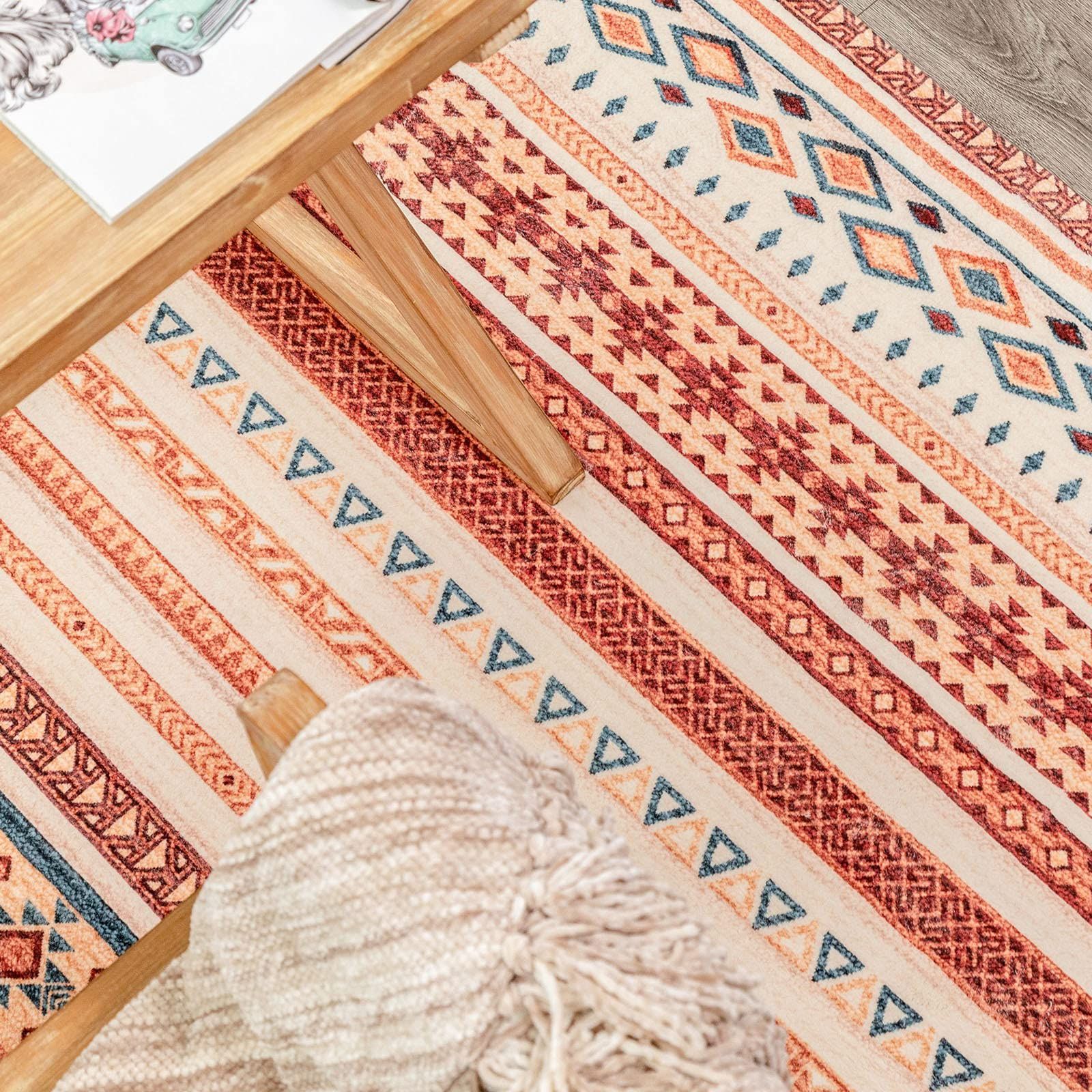 虹のようにプリントされたこのエリアラグは