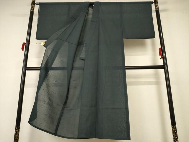 平和屋着物 夏物 男性 紗紬 色無地 黒緑色 正絹 jd