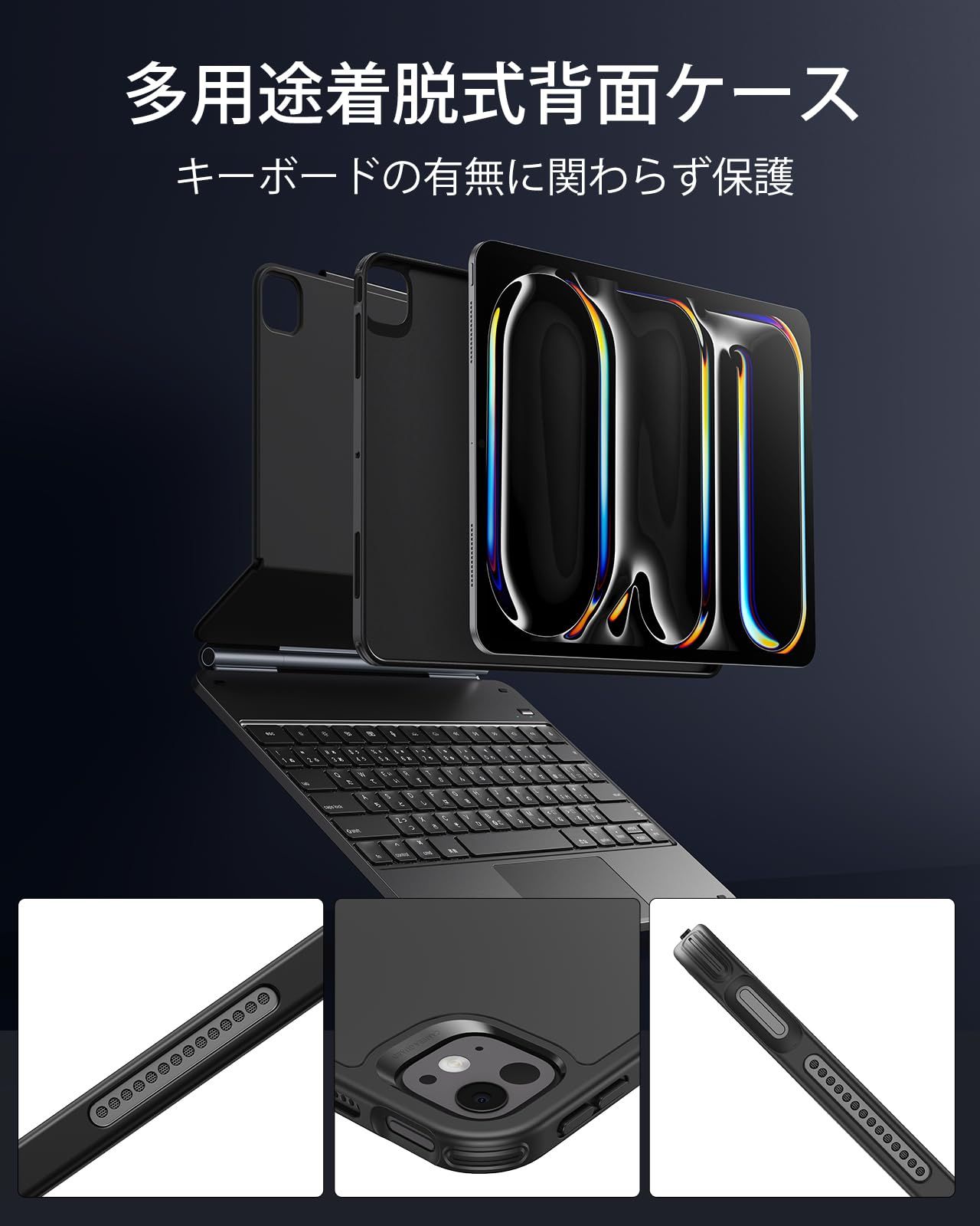 ESR iPad Pro 13 M4 2024 キーボード付きケース 簡単セット磁気スタンド付き 縦向きモード 横向きモード 脱着可能保護ケース Rebound 360シリーズ ブラック