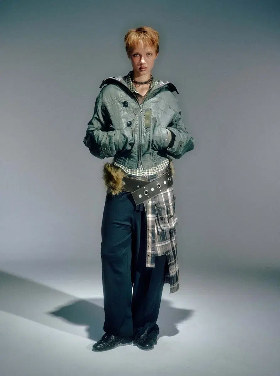 ベイコン・ブルーアーカイブ・ブルアカ ミディスカートです。ユニークなCHECKパータンが際立つレイヤードスカート商品です。ジッパーディテールとベルトデザインがユニークです。