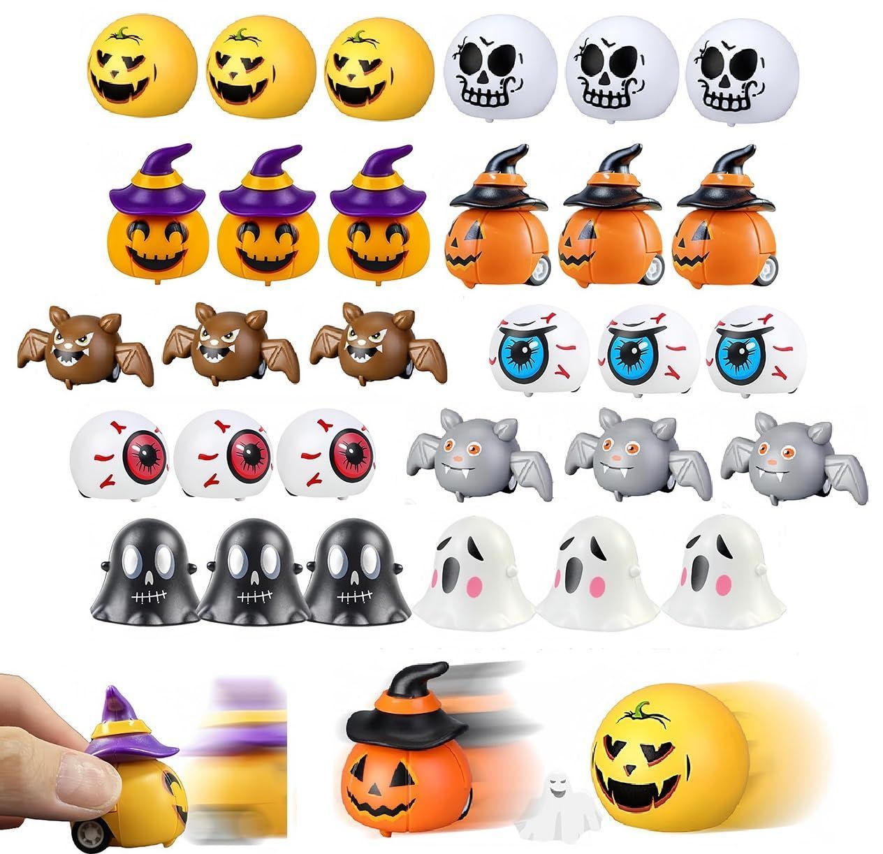 DIFEIUKI ハロウィン飾り 回送車機能 33個セット カボチャ 幽霊 コウモリ 眼球 11種類 かわいい ハロウィン おもちゃん ミニチュア オーナメント 置物 玄関小物 記念品 景品 パーティーグッズ