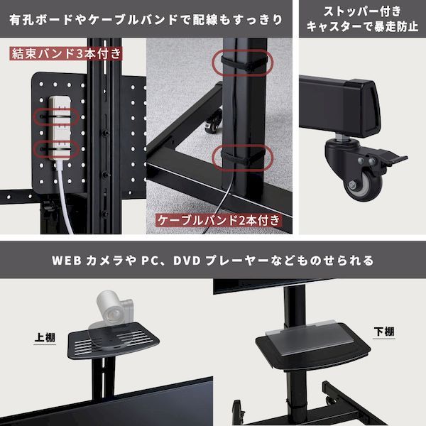 ●対応モニター:32~75インチ/可動範囲 モニター傾斜:上5°下12°、モニター回転 90°