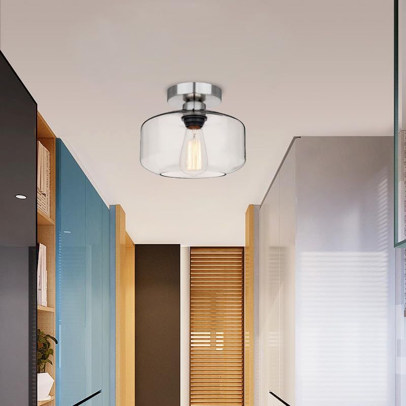 このインダストリアル風ガラスシーリングライトは、エレガントなアメリカンレトロデザインとユニークな工業風スタイルが融合し、独特のアート魅力を放ちます。厳選されたガラス素材は通透明るく、柔らかな光を放射し、空間に温かい雰囲気をプラスします。