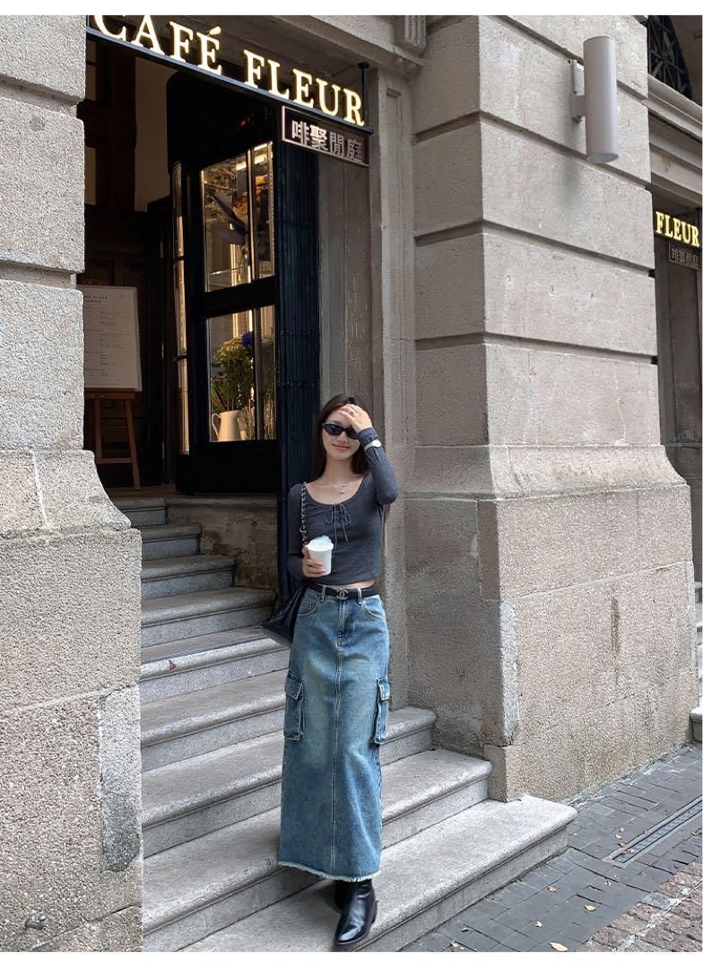 デニムロングスカート 春のお出かけ女子会にぴったり