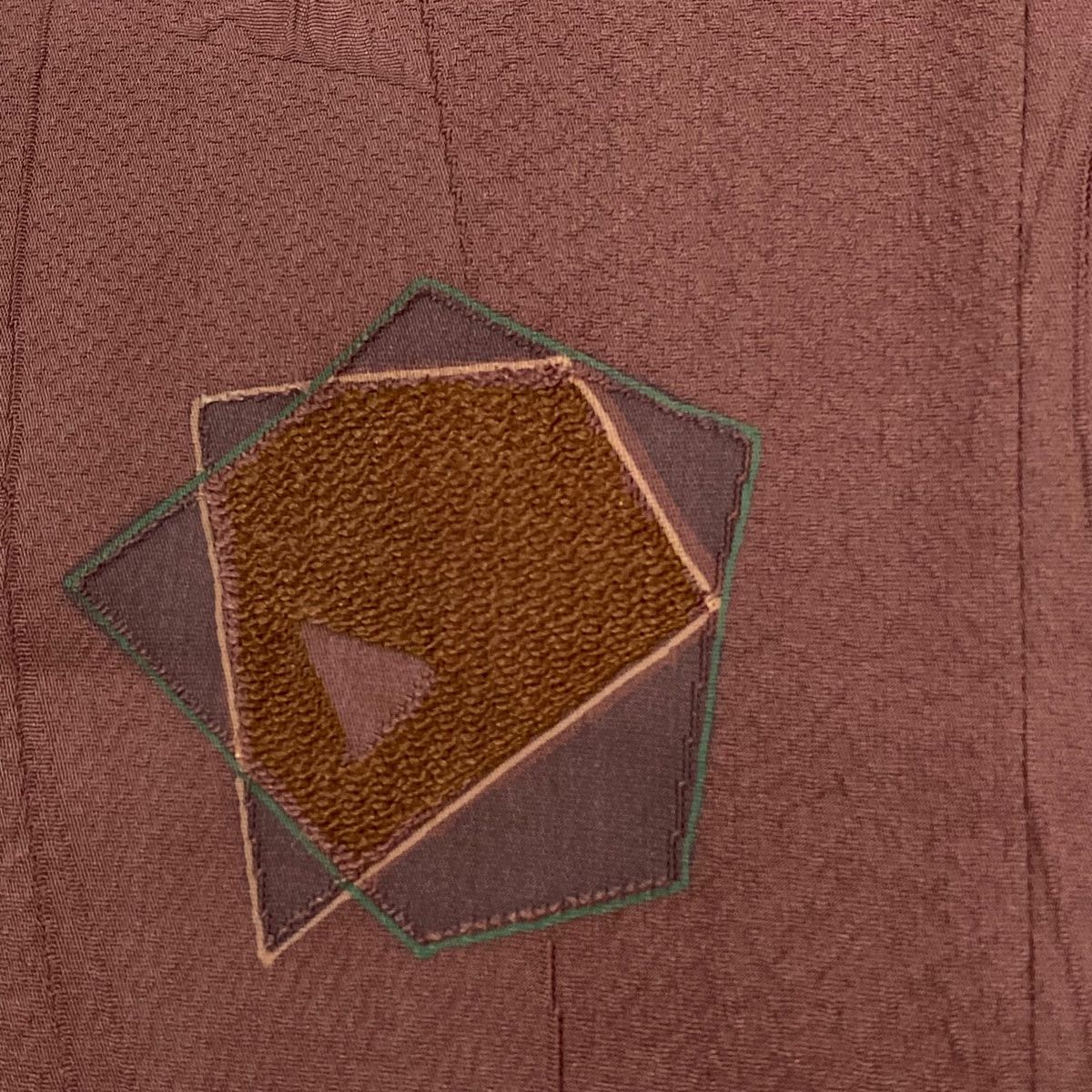 道行 身丈81 cm 裄丈63 S 和装コート 角衿 幾何学模様 地紋 刺繍 薄小豆 正絹 秀品