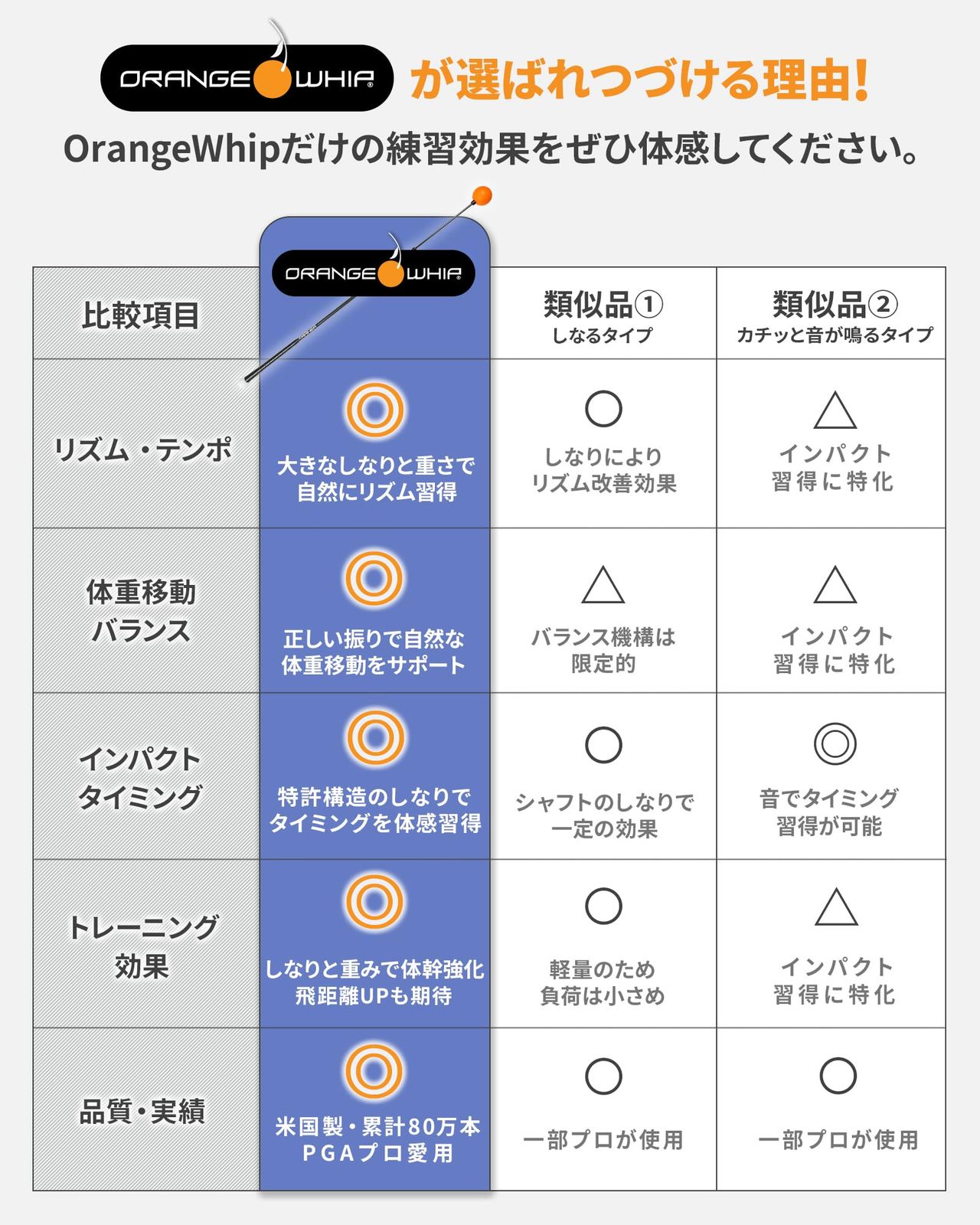 Orange Whip(オレンジウィップ)は、”振るだけ”で自然と正しいスイングが身につくように設計されたゴルフ練習器具です。
