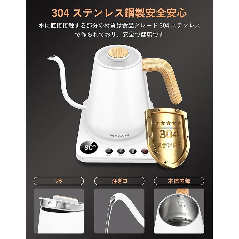 ハゴオギ HAGOOGI 電気ケトル コーヒー ケトル 1.0 L 1200 W 温度調節 1℃単位 保温機能 空焚き防止 細口 ドリップ ポット ホワイト 1