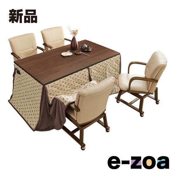 ダイニングタイプのこたつに、布団とチェアが付いた6点セット。暖かな団らんの場が作れます。