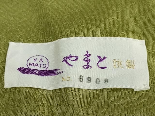 平和屋着物 上質な色無地 風景草花地紋 草色 やまと誂製 正絹 ud