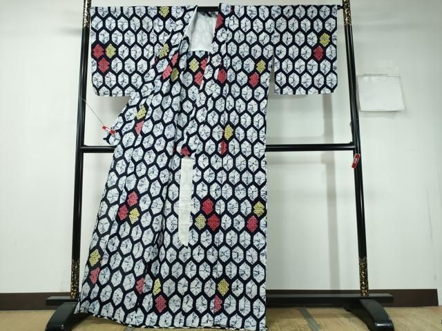平和屋着物∴夏物 浴衣 有松鳴海絞り 亀甲吉祥文 綿 ng