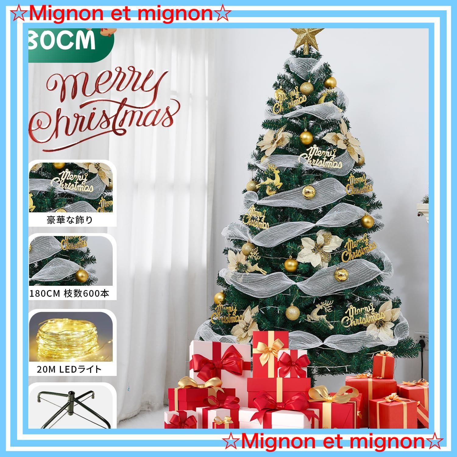 屋内 外 北欧風 豪華 商店 セット 飾り 部屋 収納便利 組立簡単 20 mLED飾りライト 14 mリボン付き グッズ 枝数600本 高濃密度 tree 日本語説明書付き christmas ツリー 180 cm