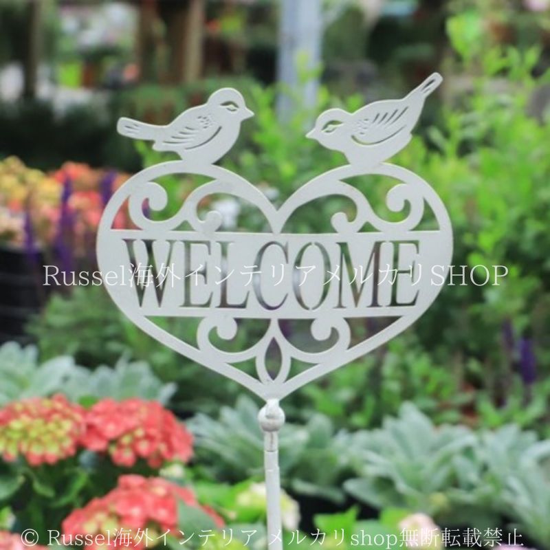 ガーデンピック ウェルカムサイン ガーデンオーナメント ガーデンスティック Welcome 鉄製 ホワイト ハート 鳥 ガーデニング 雑貨 ガーデン雑貨 ガーデンインテリア ガーデン インテリア 庭の装飾 お洒落 おしゃれ 8-14
