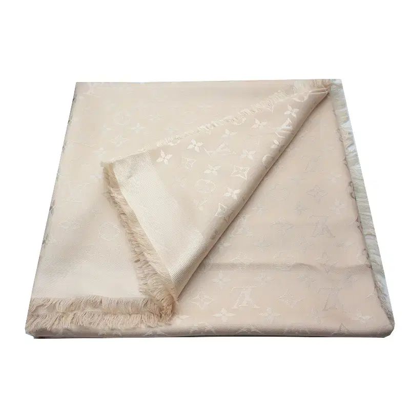 Louis Vuitton ルイヴィトン ベージュ モノグラム ウールシルク フリンジ スカーフ