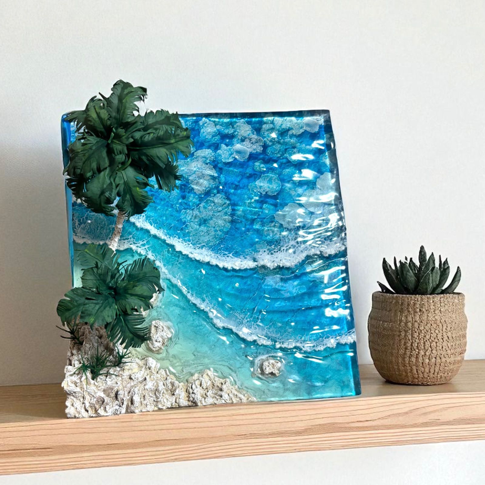 傾斜厚盛りボード ヤシの木 超立体 の海 レジンアートボード 美ら海 オーシャンアート N 685