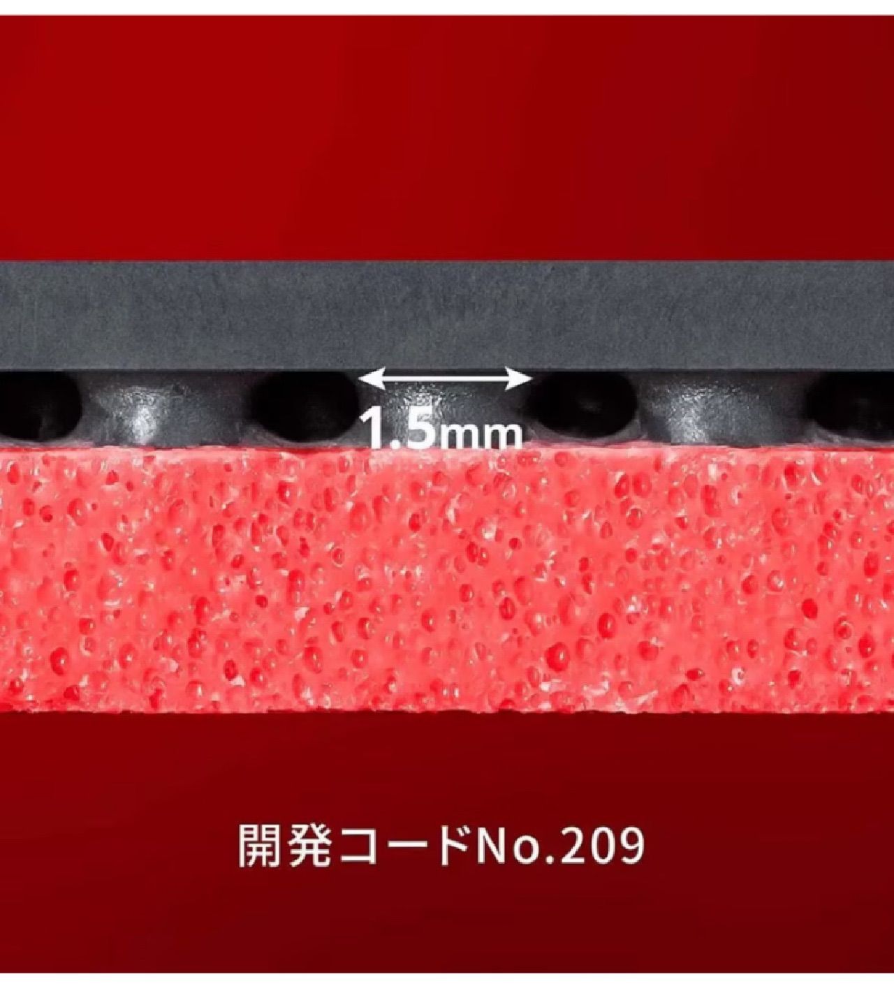 厚めのベースと細めで低いツブが特徴。粘着性ラバーの特性を生かしたプレーを引き出すツブ形状。