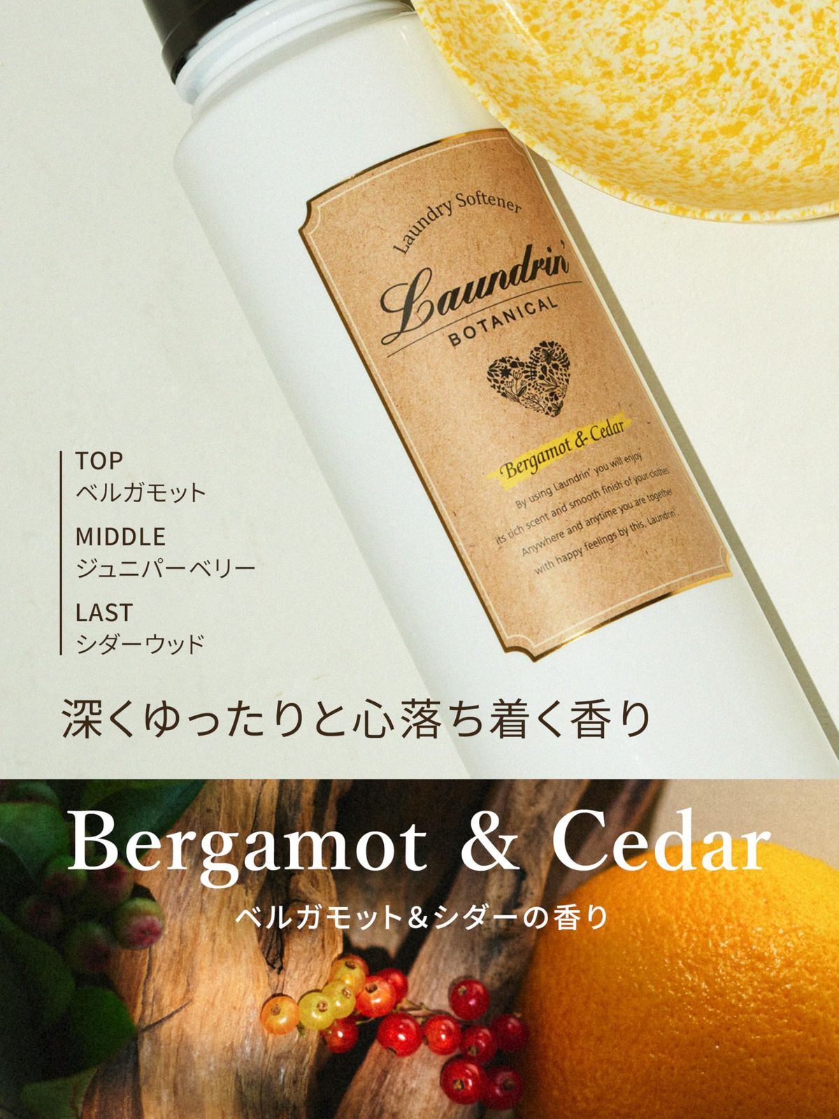 爽やかなベルガモットと、シダーウッドの深みを楽しむ、ゆったり落ち着く香り