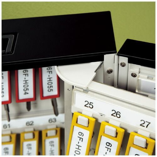 ●壁面固定はもちろん、キャビネットにも納まるコンパクト設計。●シリンダー錠タイプ●キーホルダー48個収納タイプ●サイズ/W317×D124×H310mm●材質/本体:スチール、キーホルダー:PP●質量/4.34kg●付属品/キーホルダー型名札48本:グレー・青・黄・赤×各12本、非常解錠キー2本、木ネジ4本●天地カバー・キーパネル・前面操作部・キーハンガーは再生ABS