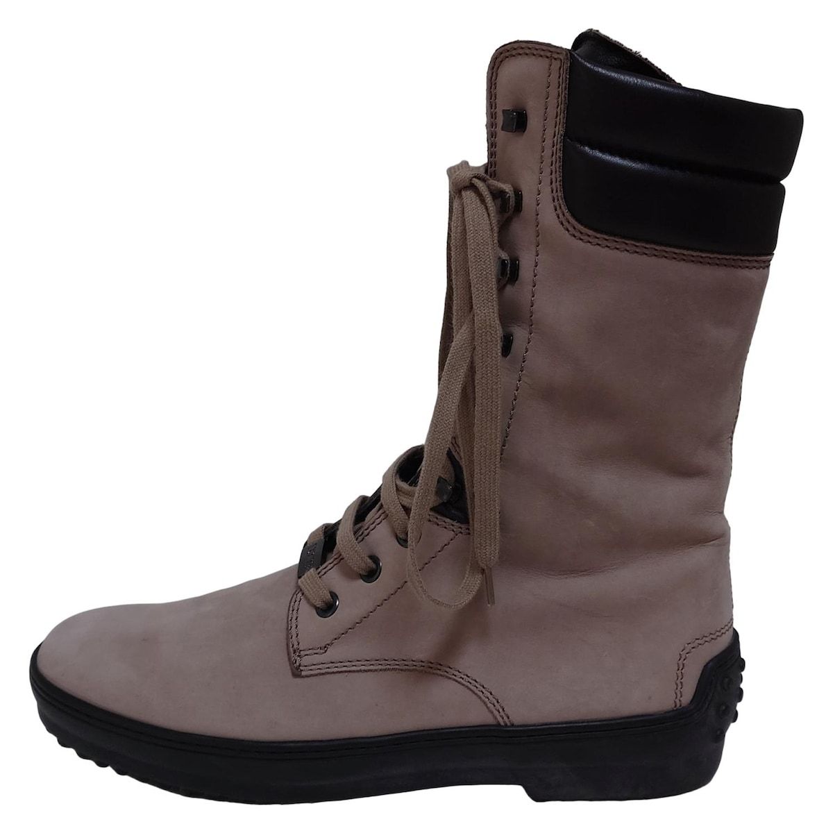 TOD S トッズ ブーツ 37 1 2 レディース - ピンクベージュ×黒 レザー