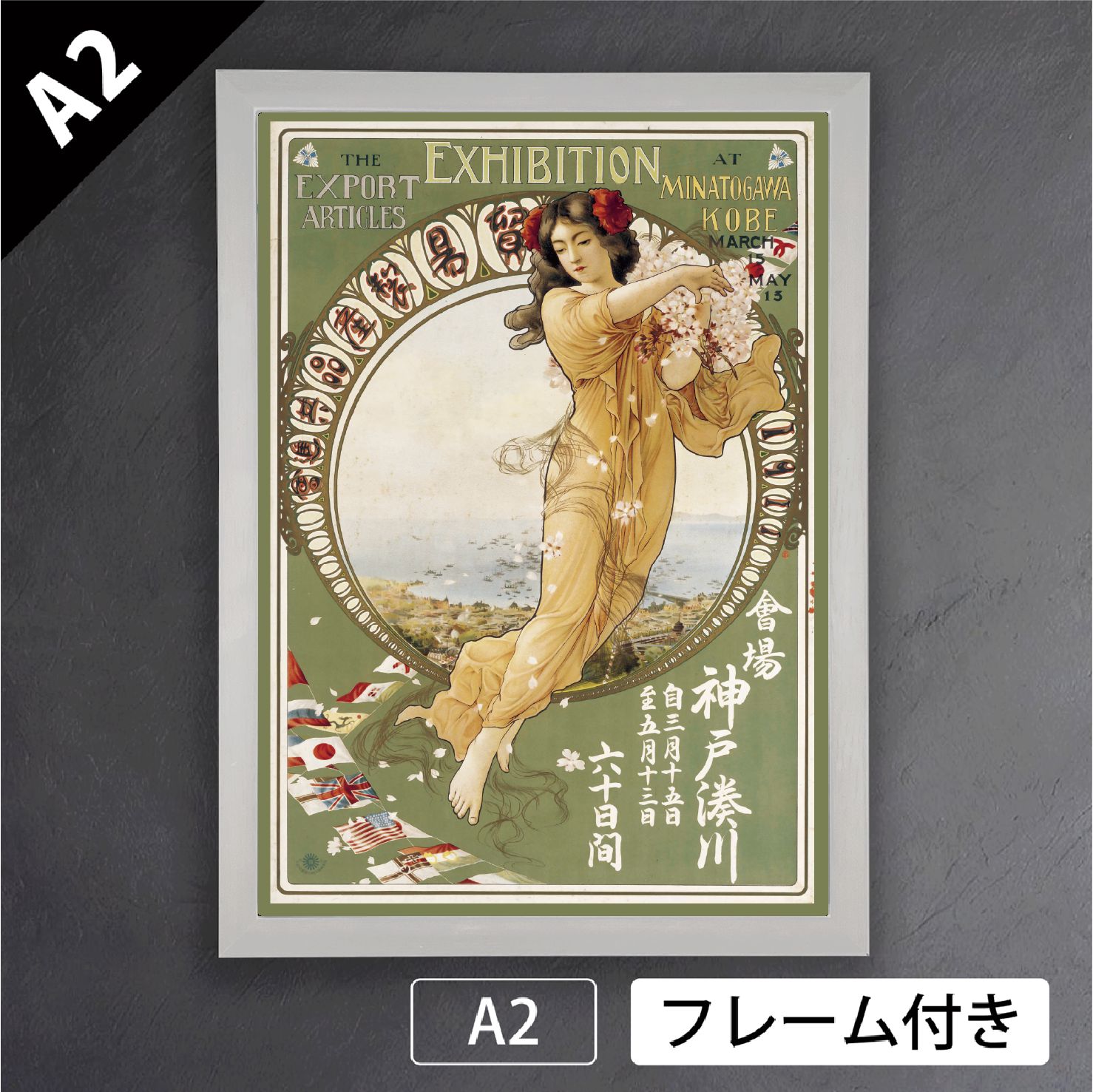 北野恒富 神戸湊川貿易製産品共進会 明治44年 1911年 ミュシャ風 美人画 日本画 アートポスターA 2 マット紙 フレーム付 JP